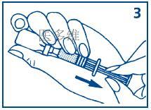 3.确保注射器针栓处于完全推入位置。缓慢的将溶液全部抽回注射器。注意勿将针栓拉出注射器。