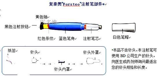 本品为预装笔式注射器,每支笔仅限一名患者使用。每次注射需使用新的无菌注射针头。包装盒内附有注射笔的使用手册。本品不含针头。可以使用胰岛素注射笔用针头。每次注射后,本品应放回冰箱内保存。