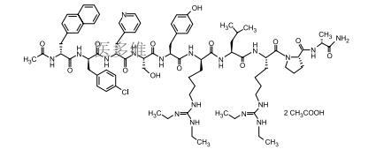 化学名称:N-乙酰-3-(2-萘)-D-丙氨酰-4-氯-D-苯丙氨酰-3-(3-吡啶)-D-丙氨酰-L-丝氨酰-L-酪氨酰-N6-[双(乙氨)亚甲基]-D-赖氨酰-L-亮氨酰-N6-[双(乙氨)亚甲基]-L-赖氨酰-L-脯氨酰-D-丙氨酰胺醋酸盐